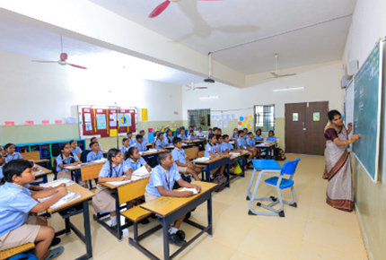 Students develop proficiency in Tamil or Hindi, with emphasis on fluency, comprehension, and cultural understanding. A third language option is also offered.